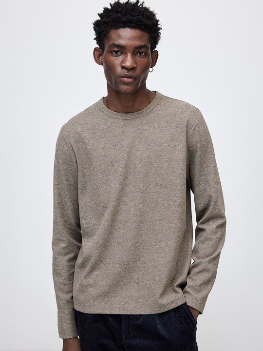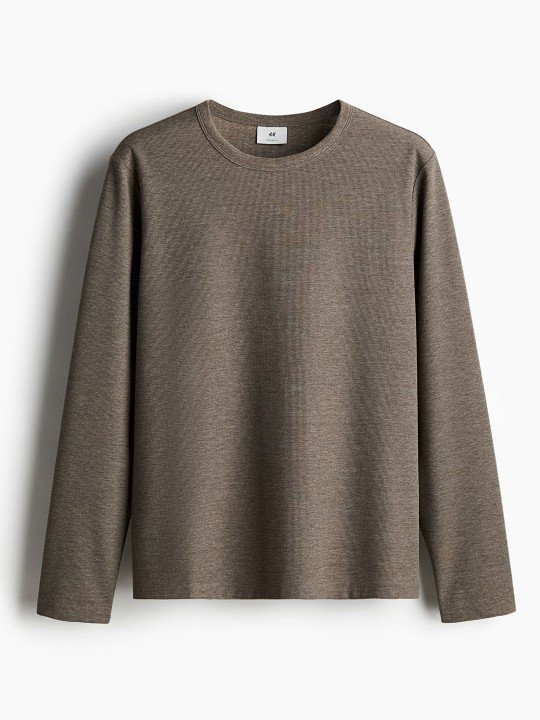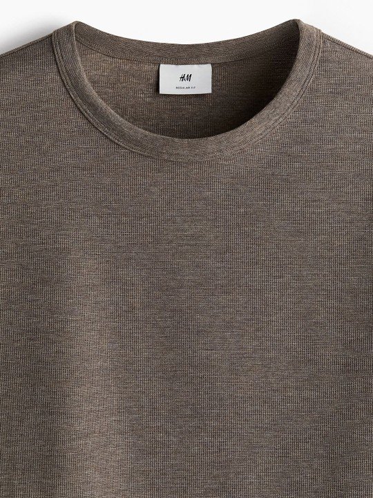 H&M regular-fit long-sleeved waffled top features textured fabric, offering warmth, comfort, and a stylish, casual look for everyday wear.