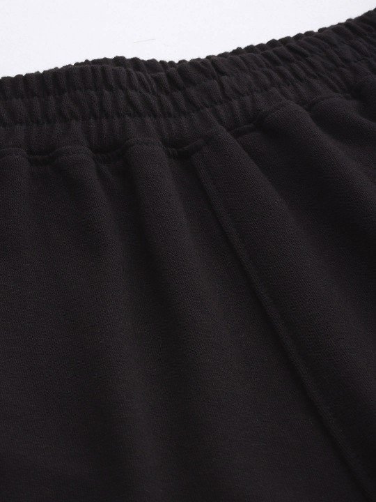 Black and pink solid mid-rise flared trousers with side taping, has an elasticated waistband with slip-on closure