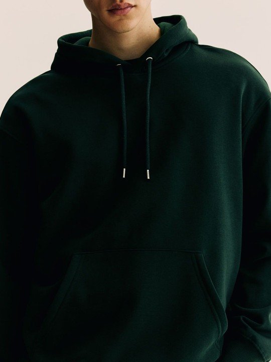 Hoodie in midweight sweatshirt fabric made from a cotton blend with a soft brushed inside. Jersey-lined, drawstring hood, dropped shoulders, long sleeves, a kangaroo pocket and wide ribbing at the cuffs and hem. Loose fit for a generous but not oversized silhouette.