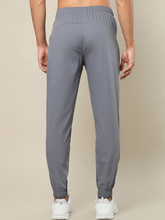 Grey solid slim-fit mid-rise joggers, has an elasticated waistband with drawstring closure and two side pocket