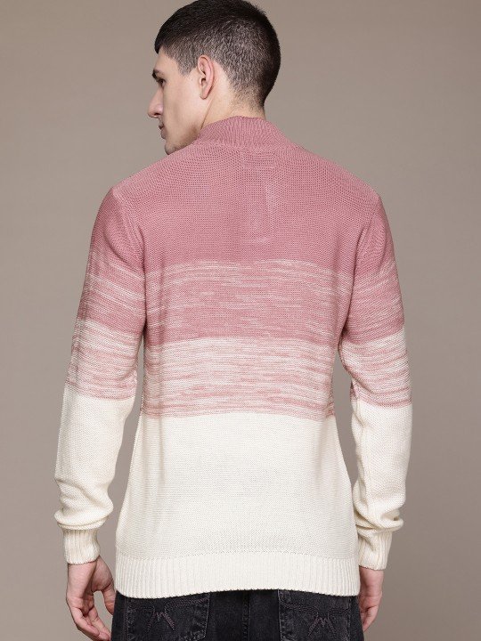 Roadster Men’s Cable Knit Colourblocked Pullover is trendy, featuring a stylish design, cozy texture, and perfect for modern casual wear.