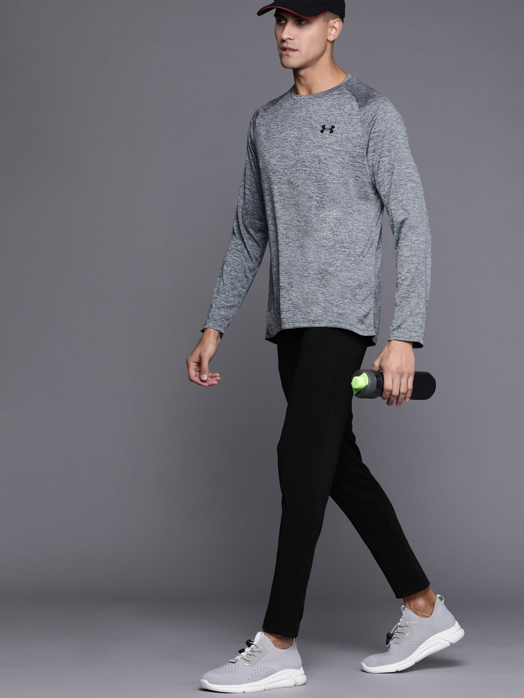 UNDER ARMOUR Men’s Grey Melange Loose Fit Tech 2.0 T-Shirt offers breathable, moisture-wicking fabric and a relaxed fit for comfort.
