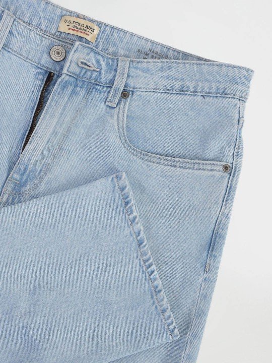 U.S. Polo Assn. Denim Co. Men's Harold Slim Straight Light Fade Jeans combine classic style with modern comfort for everyday wear.