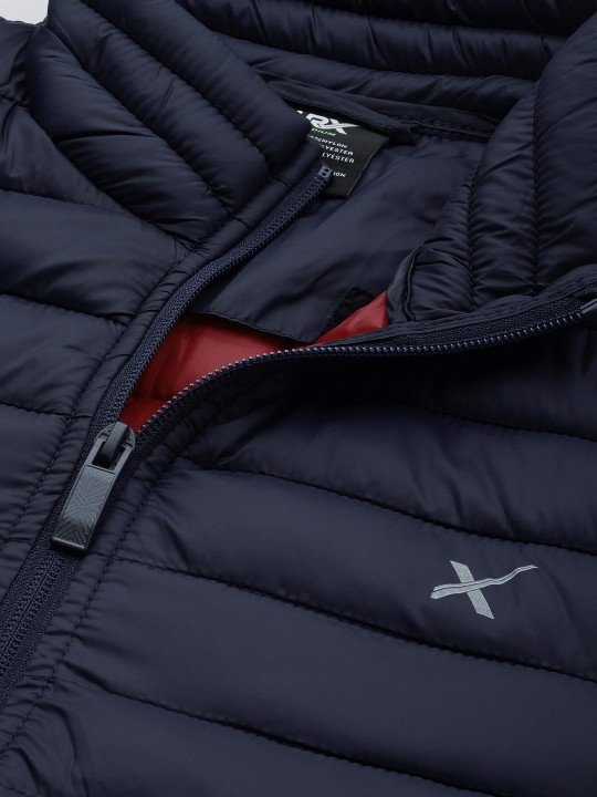 HRX by Hrithik Roshan Men Navy Blue Solid Padded Jacket offers warmth, comfort, and a sleek, athletic-inspired design for casual wear.