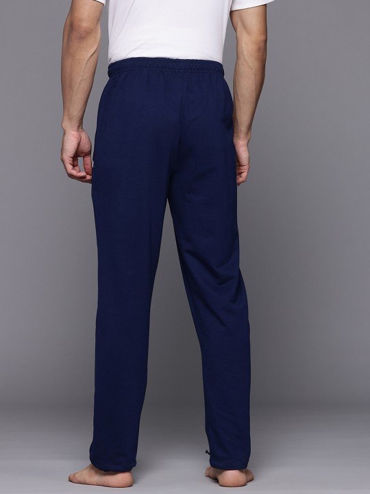 Blue solid regular fit mid-rise track pants has an elasticated waistband with drawstring closure and two pockets