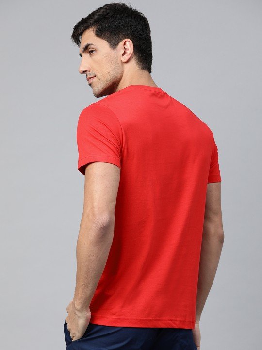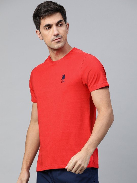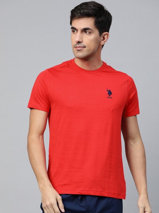 U.S. Polo Assn. men's red solid lounge T-shirt, crafted from pure cotton, provides ultimate comfort, style, and vibrant casual appeal.
