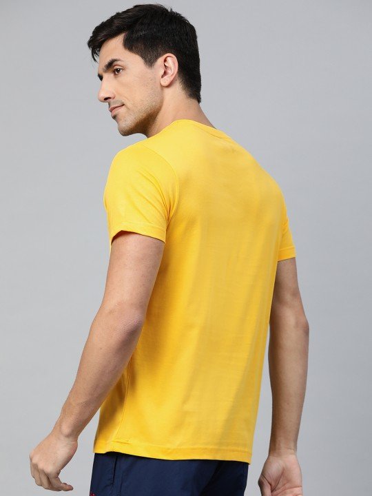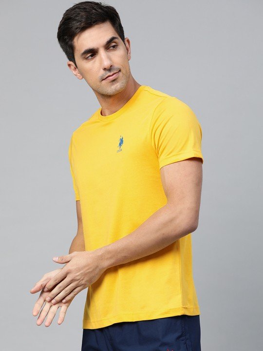 U.S. Polo Assn. men's yellow solid lounge T-shirt, made from pure cotton, offers comfort, style, and a vibrant casual look.