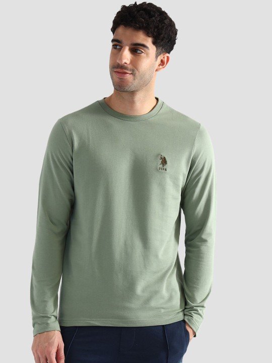The super soft and breathable build of this t-shirt allows day-long comfort to the wearer and is framed with a round neckline. Ribbed crew neck Embroidered logo at chest Long sleeves Straight hemline Solid pattern Knitted Regular fit