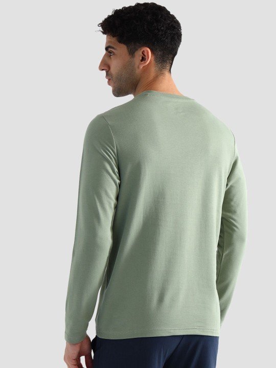 Green solid lounge t-shirt, has a round neck and short sleeves with slip-on closure