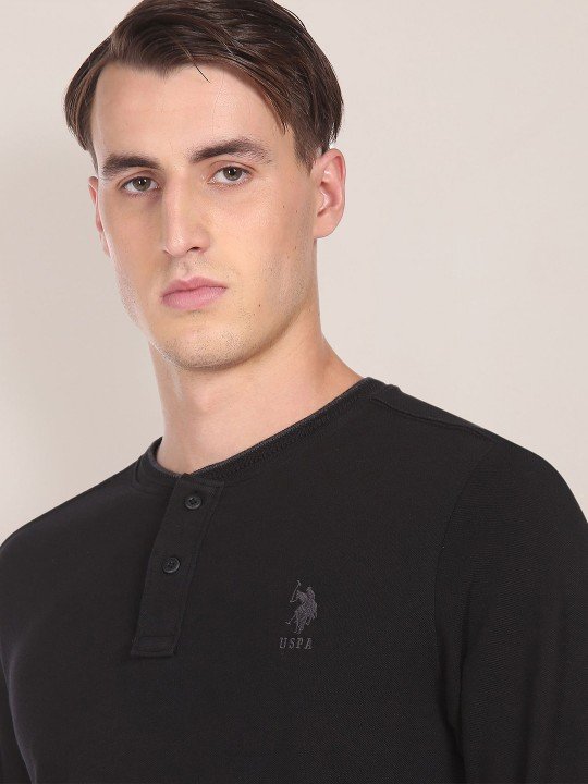 U.S. Polo Assn. men's black slim-fit T-shirt, crafted from pure cotton, offers a sleek design and comfortable, tailored fit.
