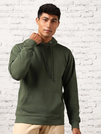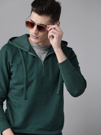 Men Green Solid Hooded...